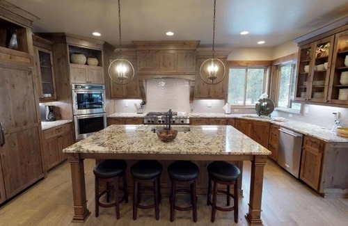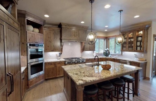Every detail at 56592 Sunstone Loop has been thoughtfully curated to ensure a comfortable stay for you and your guests. The executive kitchen features granite countertops, stainless steel appliances, and multiple cooking stations, making it ideal for catering your wedding feast. Guests will enjoy the expansive dining area that accommodates twelve, while the charming breakfast nook adds casual seating for six more. After a day of festivities, unwind on the covered back patio with breathtaking forest views, or relax in the hot tub after dancing the night away. Additional features include spacious living areas, seven beautifully appointed bedrooms, and exclusive access to luxurious amenities like the Quarry Pool and fitness center, ensuring a fantastic experience for everyone.