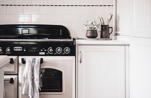 The light-filled and open-plan kitchen and living area are surrounded by gorgeous views and greenery while providing the perfect space to catch up with friends and family. The beautifully restored kitchen has all the charms of a historic house, but with the bonus of modern luxuries such as our state-of-the-art of Falcon Cooker. Open up the balcony door and you have the perfect space for a BBQ for the ages. The comfortable lounging area is decked out with comfortable couches, a smart TV, free wi-fi, board games, and more to make this your home away from home during your stay.