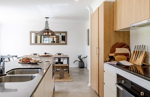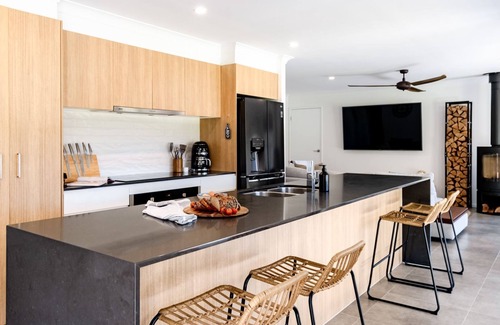 - Contemporary stylish luxury retreat featuring passive solar design + wood heater