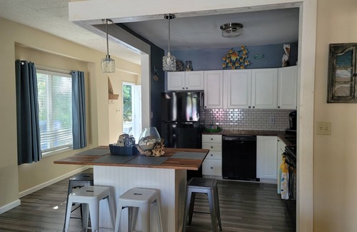 Come and "Forget About It" in a 1000 sqft 2 bedroom guest suite apartment on the first floor. Quietly and conveniently located on a cul-de-sac. Only a short walk (approximately 300 steps) to the beach! Listen to the ocean waves as you relax out back by the pool.