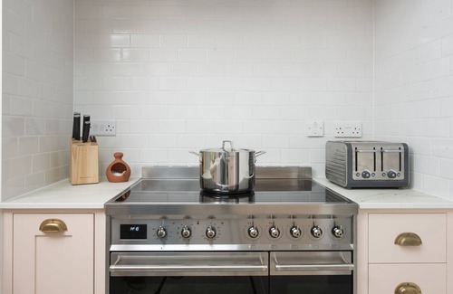 The farmhouse-style kitchen is fully equipped with modern appliances, including a large range cooker, dishwasher, and Nespresso machine. Whether you’re whipping up a quick breakfast or a gourmet dinner, the kitchen has everything you need to make preparing meals a pleasure. Upstairs, two bright and light-filled bedrooms - one king and one double - are tastefully furnished, offering restful spaces to unwind. Shutters on the windows ensure a good night’s sleep, while the bathroom boasts a luxurious roll-top cast iron bath for indulgent soaks, and a spacious walk-in shower.
