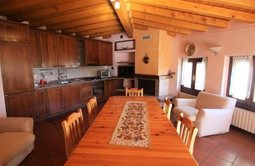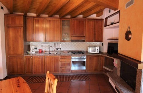 4-room apartment 100 m2, on the upper ground floor. Practical furnishings: large living/dining room with open-hearth fireplace and TV. Exit to the terrace. 2 double bedrooms. 1 room with 1 bed. Kitchenette (4 hot plates, dishwasher, microwave, freezer, electric coffee machine). Shower/bidet/WC, sep. WC. Oil heating (extra). Heating available only from 15.10. to 15.04. Terrace 30 m2. Terrace furniture. Facilities: washing machine. Internet (WiFi, free). IT017076C2JSV6EVCU