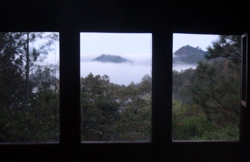 Bedroom 2 - The Treehouse: King bed, ensuite bathroom w/ 2 sinks. Amazing views of Mt St Helena summit. IMPORTANT NOTE: This room does not have window treatments to allow for full appreciation of the amazing views. Eye masks are provided.