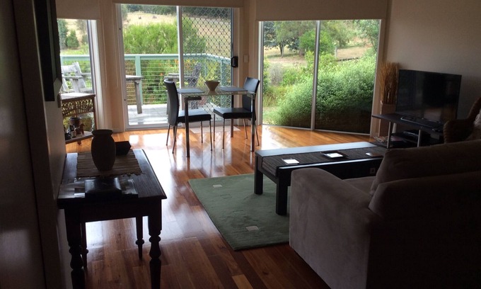 . With floor to ceiling windows and spacious deck you can enjoy the spectacular valley views across our rural property to the Otway National Park.