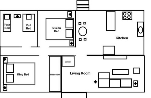 Three bedrooms and full bathroom (includes a tub and shower) are located on the main level. The bedrooms include a king bed, a queen bed, a full bed, and a twin bed. The living area on the main level is equipped with a sectional and wifi-enabled TV. The kitchen is fully equipped with everything you need to cook and serve, and includes a Keurig coffee maker. The walk out basement includes another living space with a gas fireplace, a half bath, and a laundry room.