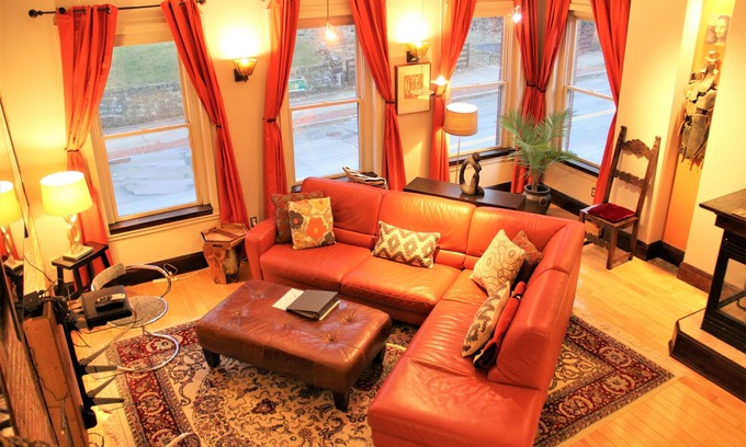 Sunny, Open, 4 Bedroom 2 full bath ModernTriplex ! Accommodates up to 8. Located just 1.5 miles from the city center, in a historic brick rowhouse, in the desirable Fort Hill neighborhood.