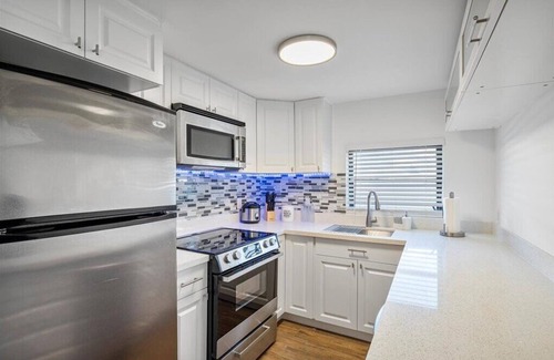 Have fun with the family and relax during a company business trip and enjoy after a long meeting or workday at this stylish “modern cottage feel home” with Ultimate Wifi Speed. This home offers 2 bedroom 1 bathroom plus a bonus ''Florida Room'' that invites lovely natural light and beautiful views of the spacious private fenced backyard. Centrally located in a safe neighborhood, only 8 minutes from the beach, 13 minutes from FLL Airport and a few minutes to other near by cities such as Las Olas, Wilton Manors and other must see tourist places.