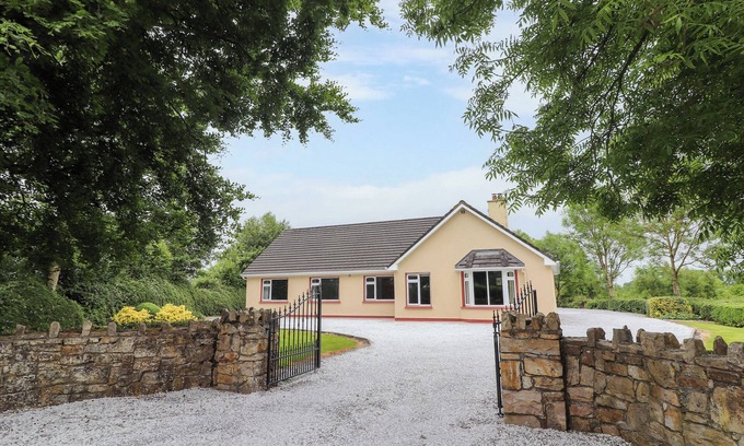 Fort Lodge is a single-storey home with one double with en-suite basin and WC and four singles serviced by a bathroom with bath and shower over, basin and WC. There’s a kitchen/diner equipped with an electric oven and hob, microwave, fridge with ice box, dishwasher, kettle and toaster. There’s a utility with a washing machine. There’s a sitting room with s Smart TV and woodburning stove. Oil-fired central heating, WiFi, fuel, power and starter pack for woodburning stove, bed linen and towels are included in the rent. A highchair and travel cot are available on request. Outside there’s private driveway parking for up to 5 cars, an enclosed front garden with lawned areas and an enclosed rear garden with lawn, gravelled area with picnic bench and bike storage. Sorry, no pets and no smoking. Shop 2.7 miles and pub 1.1 miles. Enjoy a peaceful Irish retreat with a stay at Fort Lodge.
