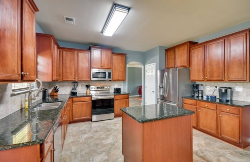 Book this Fort Mitchell vacation rental for a quiet family getaway! The 5-bedroom, 4-bath home offers plenty of family-friendly features, including a large backyard, Smart TVs, and a fully equipped kitchen. If you’re traveling with work in mind, accomplish what you need using the free WiFi and the home office area. Columbus is only 15 miles away when you’re ready to explore!