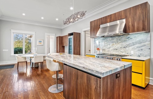 Elevate your culinary adventures in a chef's dream kitchen adorned with the finest European furnishings and Miele appliances. From the fully stocked pantry to multiple dining settings—including a kitchen island overlooking breathtaking hillside views, a marble table for eight, and an elegant formal dining room—you're set to host unforgettable feasts and intimate dinners alike.