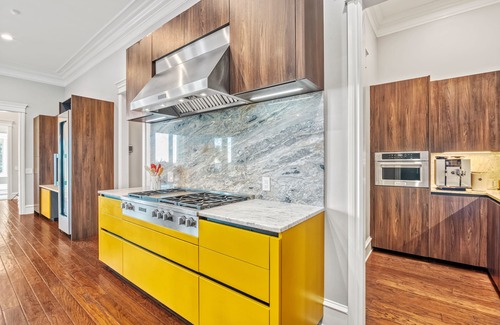 • High-end European furnishings and Miele appliances, including four refrigerators, a 75-bottle wine chiller, double oven, and warming drawer