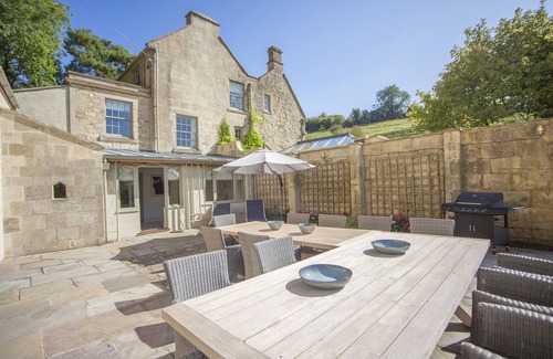 Built in 1742, this handsome Georgian house of honey-coloured stone has evolved over the centuries from simple farmhouse to a large, sophisticated and contemporary family home where you can bond together as a group or indulge in some private pamper time. Re-imagined in a Mediterranean style, this accommodating house encompasses a central sun terrace with outdoor table and chairs for 14 and a BBQ, which makes the most of the lovely rural setting and is a natural magnet for the whole group in fine weather. This sunny, south-west facing outdoor space makes a relaxing place for a morning coffee and papers, a natural re-charging hub for roaming kids grabbing a snack, an ideal hot spot for a catch-up over tea and cake, and a romantic rendezvous when raising your glass in a toast over dinner. Finally, at the end of the day, it's just heavenly for star gazing with your favourite tipple.