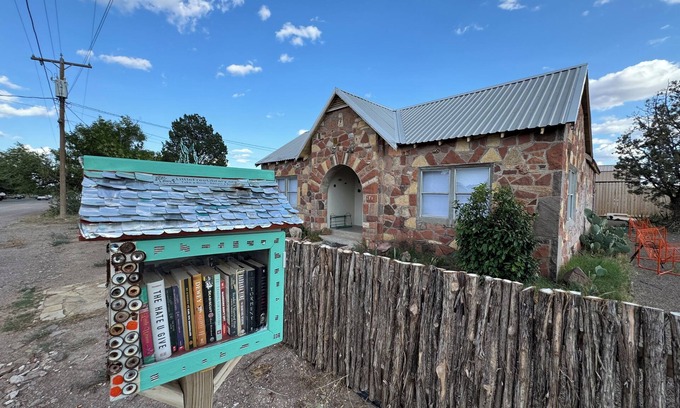 Welcome to Fossil+Folk, a unique stone house owned by an artist couple. Blocks from downtown and a short drive to Marfa and Alpine, this home is ideal for exploration and inspiration.
