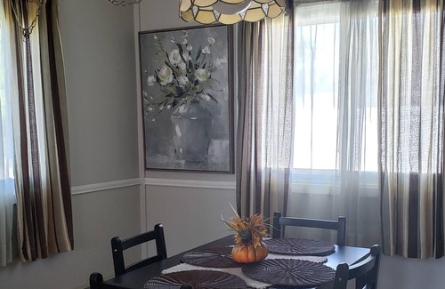 2 bedroom ranch with living room, family room, dining, kitchen, washer and dryer, tv in bedrooms and family room. This safe neighborhood welcomes walkers and is close to Dollar General. Relax relax!!!