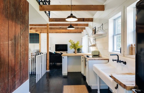 Large cottage with a main bedroom including a queen bed plus with a soaking tub room, and a large second floor loft with a queen bed. Well appointed kitchen with a stove top, toaster oven, microwave and fridge. Living room and dining area and lounge area finish off this separate cottage on the hotel's 7 acres of grasslands, pond, and large swimming pool. The hotel offers a bar and restaurant with locally sourced ingredients during your long weekend stays.