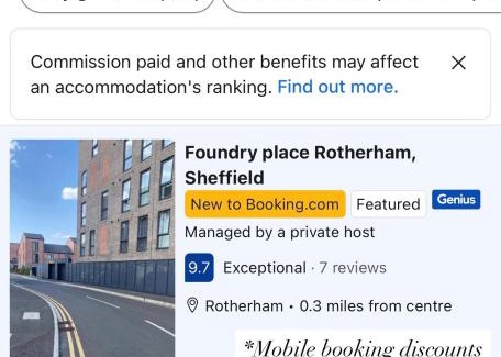 How much does it cost per night to stay in Foundry place Rotherham, Sheffield?