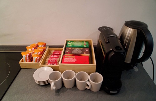 The kitchen is equipped with an oven, a stovetop, and a refrigerator, as well as an electric kettle, a microwave, and cookware. Bathroom amenities include a jetted tub, along with a hair dryer, a bidet, and towels. And you can even pack a bit lighter because there's a washer and dryer. Other amenities include bed sheets, an ironing board, air conditioning, and heating.