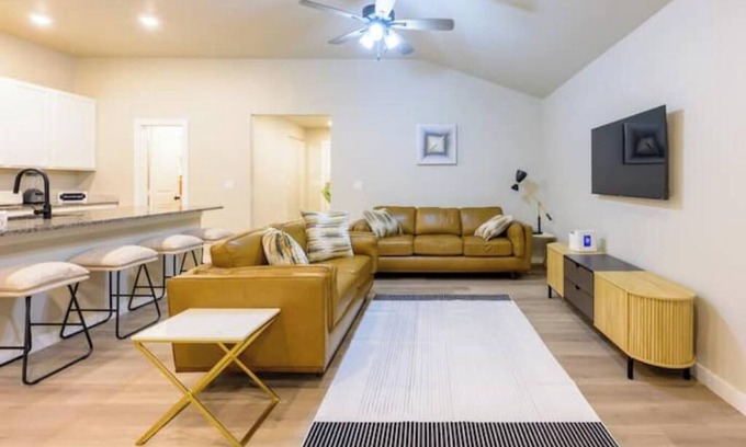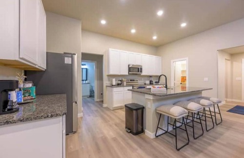 Step into your West Texas sanctuary where modern design meets a peaceful, laid-back vibe. Ideally located about 6 minutes from Music City Mall, UTPB, H-E-B, Market Street, local restaurants, MCH hospital, and shopping centers. About 18 minutes away from Midland International Airport and area attractions, this centrally located space offers comfort, convenience, and style. Whether you're visiting for business, school, or leisure, you'll feel right at home in this thoughtfully designed getaway.
