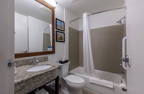 Four Corners Inn & Suites offers 70 air-conditioned accommodations with safes and complimentary toiletries. Guests can make use of the in-room refrigerators and microwaves. Bathrooms include bathtubs.