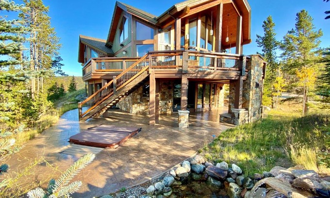 Four master suites, VIEWS! Hot tub, private ski SHUTTLE, sprawling entertaining areas! | House in Breckenridge