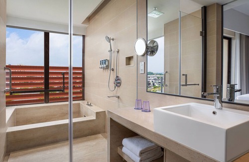 - Spacious Accommodations: Enjoy 341 well-appointed air-conditioned rooms featuring premium bedding, minibars stocked with complimentary items, and luxurious bathrooms with deep soaking bathtubs.