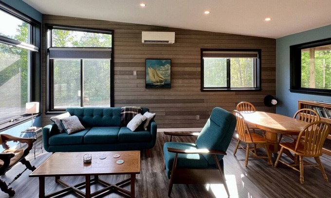 Modern kitchen, large windows, and heat pumps with AC for year-round comfort. Explore the property or explore nearby gems like Norway Lake, Lake Pennesseewassee Park, Norway Country Club, Shepard’s Farm Preserve, Roberts Farm trails, and Sunday River Ski Resort. Perfect for hiking, skiing, biking, and relaxing. A peaceful, stylish retreat close to adventure in every season. There is plenty of parking on site.