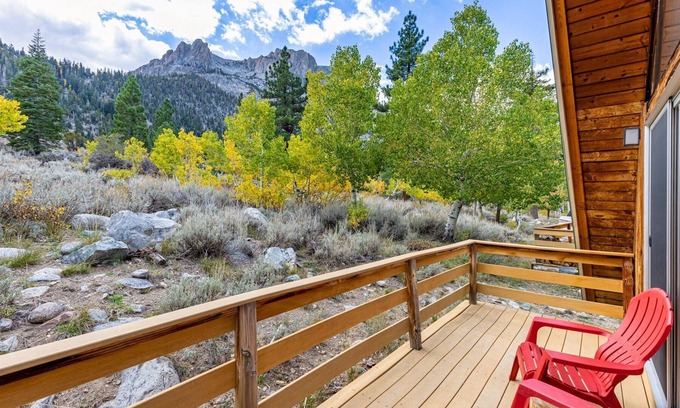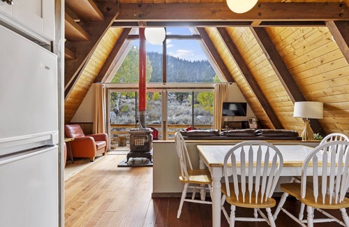 Experience an A-Frame-style cabin nestled at the foot of Carson Peak and offering breathtaking vistas of the Ansel Adams Wilderness.