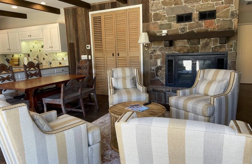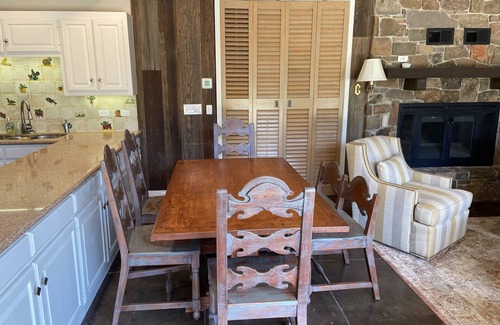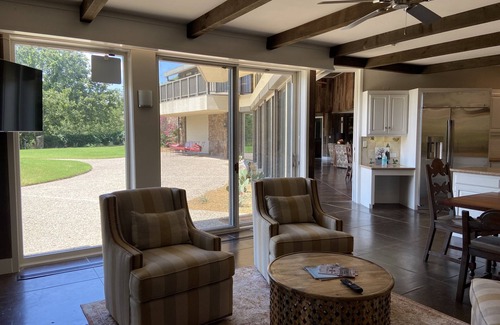 Inside this spacious home you will find finishing touches that set this home apart, making the experience during your stay genuinely unique. The natural lighting is a key feature in the home from the large walls of windows to the skylights throughout the rest of the rooms. Many walls on the main level are covered with natural stone and reclaimed barn wood from old barns originally located on the ranch. You can find hand-painted tiles on the kitchen backsplash - where no two tiles are alike as well as admire the baby grand piano displayed in the living room. From the upstairs balcony you have a sky view of the property where you can gaze at breathtaking sights any time of day.