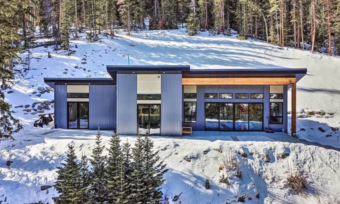 Elevate your next escape to the Rocky Mountains at ‘Four Voices,’ this luxury 2-bedroom, 2-bathroom vacation rental situated in Alma, Colorado. Boasting more than 1,000 square feet of sleek living space, modern furnishings, custom furniture, and stunning views through the wall of windows, this property is sure to impress. When you're not relaxing with all the comforts of home, endless outdoor adventure awaits in nearby Breckenridge, Keystone, Buena Vista, Vail, and more!