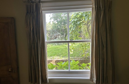 Fuel and power inc. in rent. Bed linen is included in rent, but not towels. Off-road parking for 1 car, plus on-street for 2 more. Enclosed garden with furniture, lawn, patio, covered seating area and pond. One well-behaved pet welcome. Sorry, no smoking. Shop 3.3 miles, pub 0.5 miles. Note: Suitable for babes-in-arms and children over 7 years old only. Note: Fishpond is not enclosed, stairs are steep. Please supervise children and pets at all times. Please note: new sitting room furniture will be in the property from 03rd October.