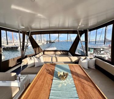 This 5 Bedrooms Boat Rental is suitable for tourists and travelers. It has several amenities that would guarantee your comfort. These amenities include: Barbecue/Outdoor Cooking, Child Friendly, Internet, and several others. This is a good star rated property and has over 2 reviews with the average score of 10 . Coming to Palma de Mallorca and needing a place to stay? Be it for work or for leisure, consider staying at this Boat Rental for your next visit, you will surely love it.