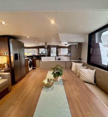 Fox Bali is located in Palma de Mallorca, just a 8-minute walk from Plaza Mayor and half a mile from Palma Cathedral. The property is around 3.5 miles from Son Vida Golf, 10 miles from Aqua Land, and 12 miles from Golf Santa Ponsa. Free Wifi is available throughout the property and Playa Ca'n Pere Antoni is 1.5 miles away. The air-conditioned boat consists of 5 bedrooms, a living room, a fully equipped kitchen with a dishwasher and a coffee machine, and 5 bathrooms with a shower and a hair dryer. Guests can take in the views of the sea from the terrace, which also has outdoor furniture. The accommodation is non-smoking. The boat has a picnic area where you can spend the day outdoors. Popular points of interest near the boat include Palma Yacht Club, Palma Port, and Passeig del Born Avenue. Palma de Mallorca Airport is 5.6 miles from the property.
