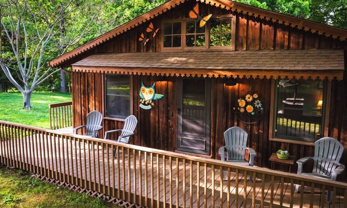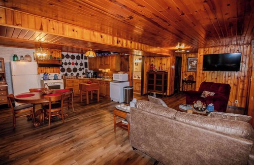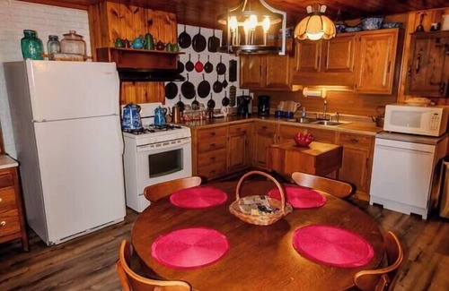 Discover the perfect family-friendly retreat at our cozy cabin, nestled among thirty acres of serene forest wetlands along the banks of Fox Creek. This charming 2,000-square-foot home blends rustic charm with modern comforts, offering a warm and welcoming atmosphere.