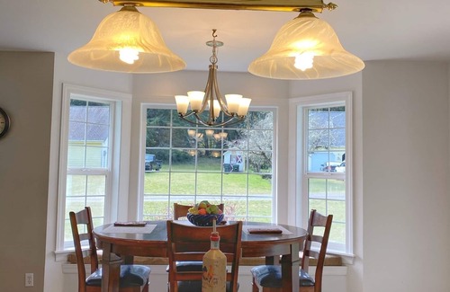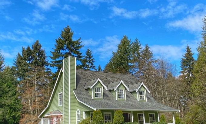Charming, large country-style home on picturesque lot in quiet residential neighborhood with plenty of privacy. Enjoy the beauty and serenity of Fox Island, only minutes from Gig Harbor and Tacoma or an hour from Seattle. Relax on the covered porches while watching deer, birds and other wildlife. Or sip wine by the cozy fireplace as you read, play games or listen to music. Ideal for families or couples wanting a spacious home away from home with fully equipped kitchen and lots of amenities.