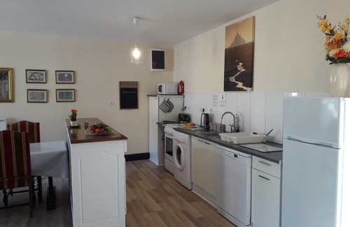 Foxes Farm is a recently renovated charming 18th century farmhouse with all the comfort of a modern home. There are two gites on site and this advert is for Gite number 2 and is exclusively private to you. Gite 2 is ideal for people with reduced mobility as there is only one step into the front door which leads straight into dining area, lounge and kitchen, which are all open plan and on one level. Via the door from the dinning area, there are two steps to get into the bedroom, which is also on the ground floor along with the bathroom. Not suitable for wheelchairs, but good for people who prefer the accommodation to be on the ground floor. As you enter the gite via the white double doors you are presented with a spacious comfy lounge/ kitchen/ dining area, that is all open plan. The lounge area comprises of 2 settees and a new smart 43" / 107cm TV which has French TV and Satellite English TV via a free sat box,. The Gite has Free WIFI. The kitchen is fully equipped with a full size Gas cooker and hob, microwave, fridge freezer, washing machine and full size dishwasher. The kitchen has a door leading to a fully fenced, south facing garden overlooking the hills and fields of the Norman countryside. The garden has a patio area, with patio furniture, table and chairs and sun loungers. From the dining area, you go through a door and two steps to the bedroom, which has a UK king size bed and black out curtains and patio doors that open to the patio area. Perfect for your relaxing morning breakfast. From the bedroom is the private en-suite, WC, Shower with monsoon shower head and sink unit. Plenty of free car parking at the front of the gite in a designated parking area. A maximum of 2 dogs are allowed, but dogs are not allowed on the beds. No other type of pet/ animals are allowed. The owners have a dog, which is in a separate private garden. This accommodation is perfect for days at the beach, shopping, and exploring the local area. It's very tranquil, a real retreat to help you relax from the stresses of life, while sitting in the garden with a glass of wine or local cider and cheese. Nearby to the gite, only 1km away is the village of Saint Laurent De Terregatte, which has two bars/ restaurants/ tabac and general convenience store and restaurant. In the heart of the village of Saint Aubin De Terregatte there is a bar with attached general convenience store / post office and depot de pain and a hairdresser. The gite is situated in the Bay of Mont St Michel, the abbey is just 25 minutes' drive away. Set in a small hamlet in Saint Aubin De Terregatte, just 10 minutes' drive from the towns of Saint James and Ducey in Normandy and only five minutes from the Brittany border. The garden has beautiful views across the fields and rural countryside. A great location for exploring both the countryside and close enough to the towns and cities for shopaholics. The house is part of a 400-year-old farm estate consisting of houses and barns. A tranquil retreat perfect for those who want to get away from the stresses of life. Set in glorious countryside with beautiful views yet within easy access to market towns, WW2 American Cemetery, beaches and shopping. Local attractions to discover include Saint James, Beautiful beaches, Brittany American WW2 Cemetery, Ducey, Avranches, Mont St Michel, Pontorson, Saint Hilaire De Harcouet, Dol-de-Bretagne and Fougeres are all within an easy 30 minutes' drive. If you are more adventurous 10 minutes away is a hidden treasure of a family theme park called Ange Michel and 15 minutes away is the famous Alligator Bay a great day out for the whole family. Perfectly located for days out to visit the WW2 D-Day landing Beaches, Caen, Beyeux, Granville, Saint Malo, Dinard and Fougeres, to name just a few. This is a very versatile location suitable for all your holiday needs, whether it is sightseeing, family fun at the beach or relaxing on the terrace with a glass of wine or house hunting. The price is ALL INCLUSIVE of, water, electricity, cleaning, internet, English & French Smart TV, bedlinen and bathroom towels. Occupancy = king size bedroom sleeps 2 Adults. The gite is all on one level so no stairs to climb just two small steps to get from the bedroom to the open plan lounge area. The spacious open plan lounge, kitchen dining area is fully equipped. No smoking within the house - Garden only please, dispose of your cigarette ends in the ashtray provided. Theme=Adventure, Historic, Peaceful Away From It All, Romantic, Family, Tourist Attractions. A tranquil escape from the stresses of everyday life. General Info = Flat Screen Smart English & French TV Available. Hair Dryer. Internet. Open Plan Living /Dinner Kitchen. Private Courtyard Parking - Iron & Board- Towels Provided - Outside Clothes Airer Kitchen - Dishes / Utensils - Microwave - Fridge / Freezer- Dishwasher - Toaster - Kettle- Washing machine - Hob/Oven- Vacuum Cleaner - Smoke Alarms - Lounge / Dining Room - Large Dining table - Comfy seating area in lounge - Satellite English Smart LCD Television - French TV also available - DVD Playr - Electric Fire - The bedroom is on the ground floor, with patio doors leading to the patio and private fenced garden. Perfect place to sit and have breakfast or a glass of wine in the evening. The bedroom has black out curtains. The en-suite is directly off the bedroom and comprises of a large shower with monsoon shower head and wash basin and toilet. Not suitable for babies. Garden -Patio / Terrace area - Table and chairs - Sun loungers- BBQ. There is also a lovely orchard to explore, planted few years ago. Attractions and Places of Interest =Mont St Michel - Ange Michel family adventure theme park - Alligator Bay - Raptor Park - Local Beaches and the WW2 D-Day Landing Beaches - Museums and monuments - Chateau - American War Cemetery - German War Cemetery - Cinema - Market Towns - Fougeres - Christian Dior Museum - Leisure Activities - Cycle routes - Fishing - Restaurants/ Bar/ Cafes 