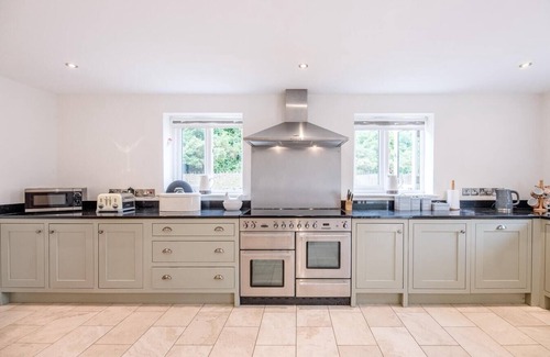 The amenities at Foxglove House, Aldeburgh are tailored for comfort and celebration. The stylish kitchen is perfect for preparing meals for your loved ones, featuring ample equipment including a Rangemaster double oven and an extendable dining table ideal for long celebratory lunches. Relax in the spacious living room or gather in the vaulted cinema-style family room, equipped with a 65-inch OLED TV and inviting sofas that provide the perfect atmosphere for unwinding after the festivities. The accommodation includes three king-size bedrooms, two with en-suites, along with a twin bedroom, all offering serene river views for a restful night’s sleep.