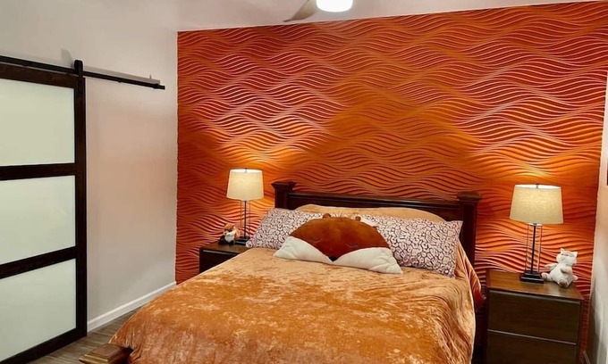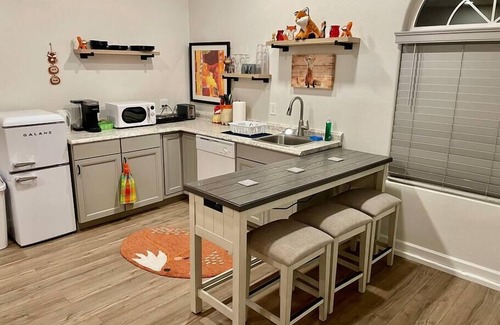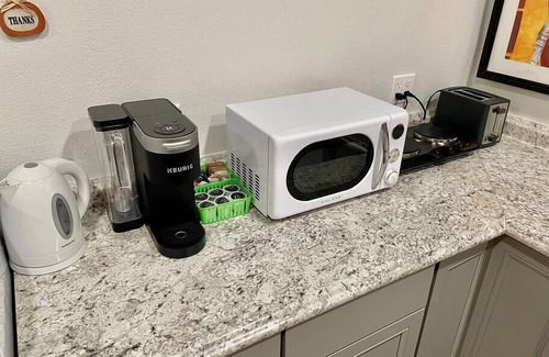 This cozy guest suite offers a comfortable studio layout with a full bathroom and a private patio featuring a relaxing hot tub. The studio is designed for comfort and convenience. The kitchenette includes a microwave and a two-burner cook plate (no oven), perfect for preparing simple meals. We provide complimentary starter coffee and tea to help you settle in.