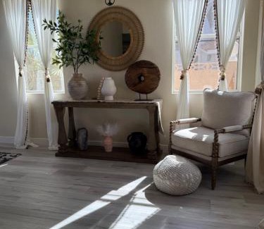 Fragrant Finnish Sauna & Cozy Pool with French 3br is a recently renovated villa in Las Vegas where guests can make the most of the garden and bar. This property offers a rooftop pool, free Wifi, and free private parking. The villa has a picnic area and a sauna. Offering a terrace and mountain views, the spacious villa includes 3 bedrooms, 2 living rooms, flat-screen TV, an equipped kitchen, and 3 bathrooms with a bidet and a bath. A private entrance leads guests into the villa, where they can enjoy some wine or champagne and fruit. This villa is allergy-free and non-smoking. An indoor play area is also available for guests at the villa. Forum Shops at Caesar’s Palace is 6.6 miles from Fragrant Finnish Sauna & Cozy Pool with French 3br, while Bellagio Fountains is 6.9 miles away. Harry Reid International Airport is 8.1 miles from the property.