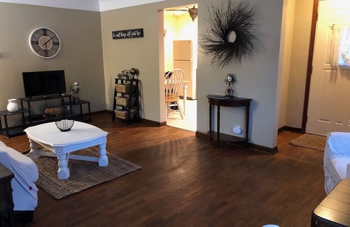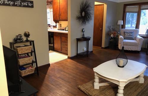 This home features queen beds in all bedrooms. The completely furnished kitchen has everything you will need including a dishwasher. The living room features a queen size sleeper sofa and two easy chairs. All the rooms have hard wood floors. This home is in the Frankenmuth school district. We do charge an additional $50 per guest per night for guests exceeding 4. This allows us to keep the nightly rent reasonable for couples and small families. Also, there is a $59 charge for property insurance or this cost can be avoided by providing $1500 in refundable insurance.