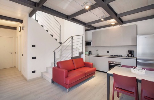 A balcony with lake view completes the apartment which has a private parking space and can accommodate up to 5 adults.