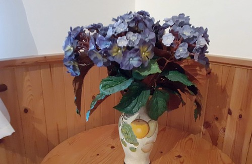 Amenities: Oil central heating with woodburning stove. Electric oven and hob, microwave, fridge, dishwasher, washing machine. TV, DVD player. Heat and electricity by meter reading payable by guests on departure. Bed linen and towels inc. in rent. Off-road parking for 2 cars. Garden with furniture. Sorry, no pets and no smoking. Shop 2.7 miles, pub and restaurant 1.3 miles. Note: Check-in from 4pm, check-out by 10am.