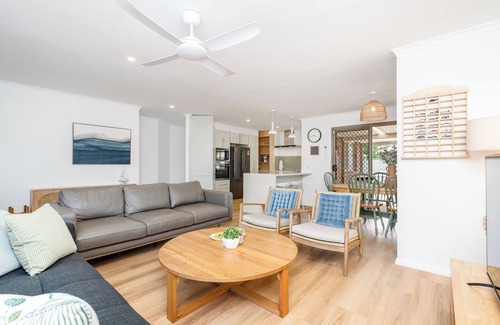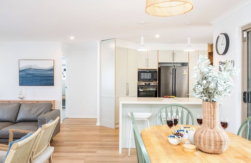 Welcome to your modern beach retreat, where style meets relaxation. This beautifully presented 4-bedroom home offers everything you need to relax and recharge—complete with a sparkling saltwater pool, king bed, fast WiFi, and a central location.