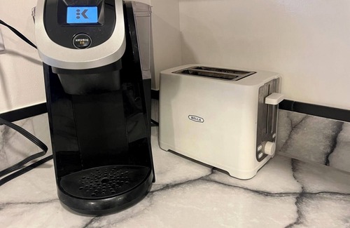The kitchen comes with all-new, modern appliances: dishwasher, gas stove, full-size refrigerator, microwave, toaster and Keurig coffee maker. It's also stocked with all the silverware, dishes, utensils, etc, you need to cook and entertain with ease. And most importantly, it has an Aquasana filter system for delicious drinking water. This system surpasses most others and will save you time and money as you won't have to purchase or carry water jug refills.