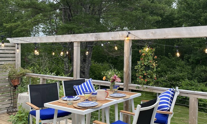 Our Beautiful summer loft is relaxing for star gazing on our deck, grilling , and relaxing next to our stone fountain after a fun day of Maine sight seeing and fun activities.