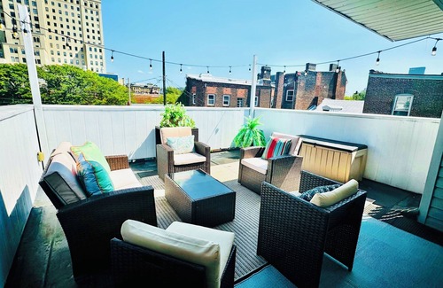 Read our guests reviews! Perfect location to walk everywhere. Minutes from the park. Great roof top deck. Across from Allegheny General Hospital with off street park. ➤Acrisure Stadium 1.0 ➤PNC park 0.8 ➤AGH 0.1 ➤Yinz Coffee 0.1 ➤Starbucks 0.1 ➤Downtown 1.1 ➤Rivers Casino. 1.3 ➤Carnegie Science Center 1.3 ➤Children's Museum 0.4 ➤Stage AE 1.1 ➤Aviary 0.4 ➤Mattress Factory. 0.4 ➤Andy Warhol Museum 0.6 ➤Mexican War Streets 0.5 ➤Randyland. 0.3 ➤Max's Tavern 0.4 ➤Strip District 1.8 Turn of century brick row house. 1200 square foot space beautifully decorated with a fully stocked kitchen and open living area on the 1st floor. Two small bedrooms with queen beds that fit perfectly in each with soft cozy linens. Up the small staircase to a loft area with a comfortable couch that pulls out to a queen. Large roof top deck with a view. This is the city with all it’s wonder and diversity. There is constant revitalization taking place. The location is a multi-cultural mixed income neighborhood. Please do not book if you are uncomfortable with that. This house is not for folks with mobility challenges. This rental is in a house with two apartments. This apartment is upstairs. ➽The Space KEY AMENITIES/DETAILS ➙check in: Keyless smart lock. ➙check out: Always chore free. ➙beds: 2 queens, 1 pullout couch queen mattress. ➙sleeps: 6 ➙parking: free private parking lot behind house. One space. ➙kitchen: fully stocked. ➙internet: high speed Verizon FIOS mbps 940 - upload up to 880 mbps. ➙TVs: two 55 inch in living room and 3rd floor loft. ➙streaming: use your personal password to stream HBO, NETFLIX & many more channels. ➙coffee: premium whole bean. ➙HVAC: forced heating & air. Goggle nest Thermostat. ➙cleaning: professional cleaning team ensures a spotless and neat & tidy space ready for you to enjoy. ➙host: Caroline~ I will give you your space but I am always available and will get back to you in minutes if not seconds. CLEANING PROCEDURES: We put ourselves in your shoes when it comes to a spic and span space. We know how important it is to enter your home away from home and notice only a clean and tidy suite. We don't outsource our cleaning - our cleaners are professionally trained with a passion for what they do! We personally do inspections before every single check in to ensure a next to perfect totally cleaned space. ABOUT THREE RIVERS SUITES: Communication and location. Our suites are walkable to most North Side attractions and downtown Pittsburgh. Just let us know where you would like to go and we will let you know how far the walk or ride is. The cultural district, Mt. Washington and the Strip District are an UBER ride away. For us COMMUNICATION is key to a hassle free stay. When you contact us our host will get back to you ASAP to answer any questions or concerns you may have. Entire upstairs apartment and roof top deck. My phone is always in hand and ready for any questions or concerns. I will get back to you in minutes if not seconds. ➙According to the Northside Chronicle, Northside is one of the most historical districts in the city. The Allegheny Commons park is Pittsburgh's oldest park---- known for its mature canopy trees and lovely Lake Elizabeth, it is within walking distance from Loraine Street. Max's Tavern is an authentic German no frills restaurant with a great little bar and cozy booths. If you are looking for something a little more fancy, Fig and Ash on East Ohio street is the place to be. Delicious home-away-from-dishes led by one of Pittsburgh's top chefs. Siempre Algo also on East Ohio Street is a cozy romantic spot with vegetarian options and delicious desserts. Don't miss Yinz Coffee on East North Ave and Starbucks. Anthoer coffe shop is located on Buena Vista right next to Randyland on Arch street. Randyland is a magical experience and not to be missed-- guarantee you have never been to a place like this before. 412 Apotheca on Federal Street will delight your senses ---featuring a curated selection of bath, body & hair products as well as small gifts centered around self care. The Andy Warhol Museum, The Mattress factory, Children's Museum, Alphabet City, downtown, North Shore, Heinz Field and PNC park are all within walking distance. What makes Northside so unique is it’s cultural diversity from starving artists to young professionals and neighbors that have lived and worked in Northside for decades—excitement is in the air in this thriving community. This is the city and not the suburbs and a reminder, you will see and hear the hospital's helicopter....which adds to the richness of the neighborhood. The kiddos will love it. You may encounter some older building that need more love, but Loraine Street and the area surrounding is a safe place to be. According to the Northside Chronicle, Northside is one of the most historical districts in the city. Home to a free three day music festival that takes place in July and features hundreds of bands. The Allegheny Commons park is Pittsburgh's oldest park. Known for its mature canopy trees and lovely Lake Elizabeth, it is within walking distance from House. Max's Tavern is an authentic German no frills restaurant with a great little bar and cozy booths. Also Legends restaurant is a 10 minute walk from house —-the food is home made and fabulous….but BYOB. If you are looking for something a little more fancy, Fig and Ash on East Ohio street is the place to be. Delicious home-away-from-dishes led by one of Pittsburgh's top chefs. However, please remember to make a reservation so you can enjoy this unique spot. Don't miss Yinz Coffee on East North avenue---yinz are gonna llike this place, Commonplace Coffee on Buena Vista right next to Randyland on Arch street—a wonderus experience and not to be missed-- guarantee you have never been to a place like this before. 412 Apotheca on the corner of James and Suismon will delight your senses ---featuring a curated selectio