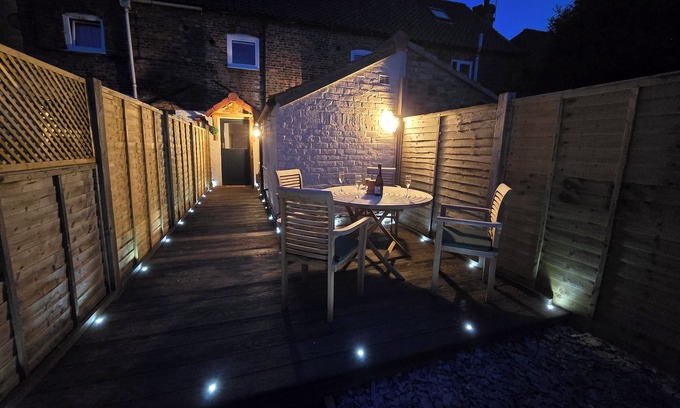 Available Now. Luxury Quaint Period Cottage, Beverley Town Centre. Sleeps 4. Beautifully fitted out, First floor comprises of: One Kingsize bedroom with smart TV and one twin bedded room. Ground floor comprises of: Lounge (smart/freeview TV & fire), Dining Room, Kitchen and full Bathroom. Rear stable door with access to the private rear Garden on decked patio with dining area ; all in a compact footprint. Free on street parking (arranged prior). 2 Nights Minimum.