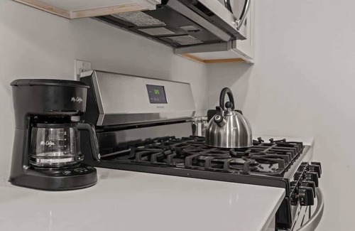 The kitchen features numerous cooking appliances and spacious countertops. If you want to take a break from the Central City restaurants, then this is the place for you.