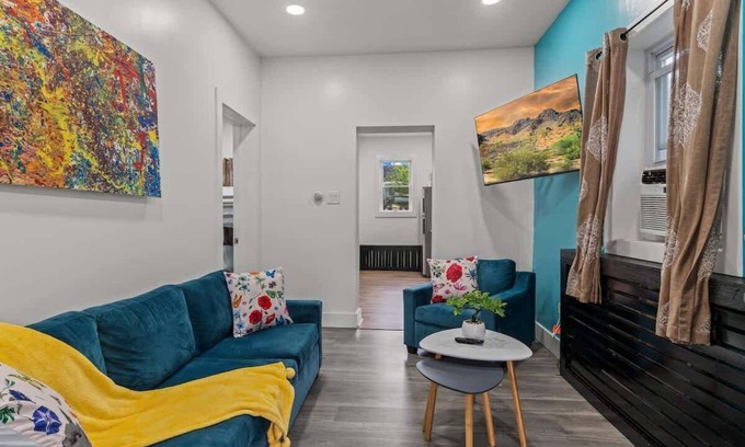 The apartment is 3-minute walk to the Regional Rail Tacony Station. I-95 on ramp is a block away and only a 15min drive to City Hall and Easy train transportation to many other popular sites and areas. Adventure through Philadelphia and the region easily from this prime location. Once you are ready to relax, retreat to the comfy apt.