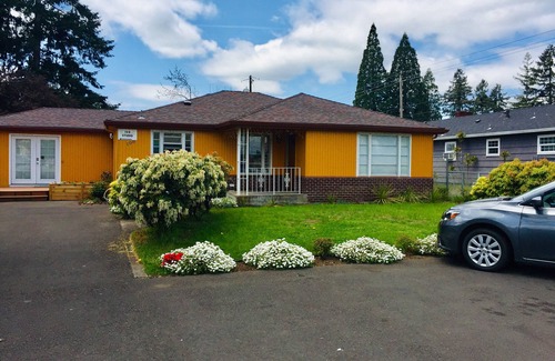 The studio is separate from our main house with a laundry room and it has brand new memory fancy mattress queen size bed and extremely also has a large futon and lay it flat down and it become another standard queen size bed if need it ,( Please message me if you need set up the futon as a bed.) Therefore we actually have two queen size beds available for guests.There is a little kitchen in the studio and a private bathroom for the guests to use . We have plenty parking space for our guests. We do have a busy road beside us (if you 're used to city noise, it's pretty mild but wanted to warn you case you're looking for country quiet) The location is very convenience to go anywhere. 4 blocks to the freeway and across the river is Portland,and also 8 minutes to the PDX airport, many shops and restaurants and coffee ships in walking also do you want it?