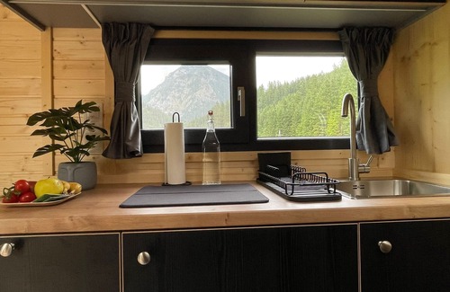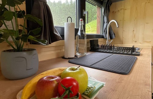 Escape to a peaceful countryside retreat at the Free Zone 1 by Tiny Away! Tucked away in the sunny Karawanks, Austria's southernmost mountain range, our tiny home offers several outdoor adventures like hiking, rock climbing, paragliding, and swimming at a nearby reservoir. Enjoy your holiday escape surrounded by lush forest with hammocks, and don’t miss our on-site farm shop, offering locally sourced delights such as cheese, bread, honey, meat, and eggs—fresh and sustainable for a healthy lifestyle.